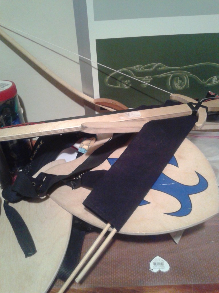 This may not look like anything more than a mess of swords, shields and bows, but it is so much more. It is literally hours of play outdoors.