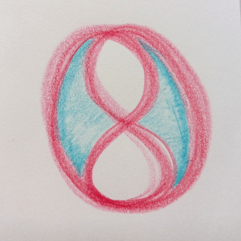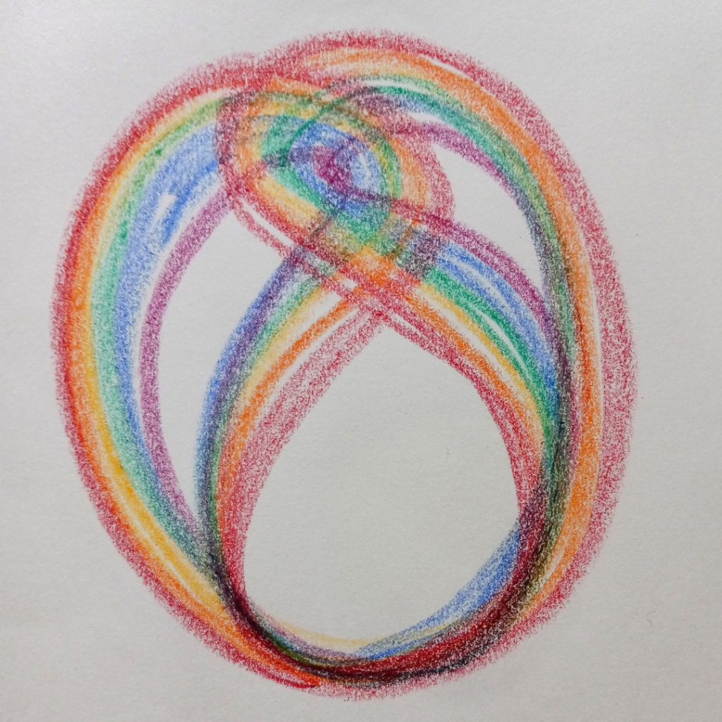 For this form, my children created a circle carrying a lemniscate in its centre. The form was drawn all in one fluid movement, starting at the top, and moving around the outer circle in a clockwise direction. So our path was top right and around the circle back to the top where we would dip into the circle to make the lemniscate, right down to left, up right to left to meet that first spot where we started. We typically draw a form by following the path multiple times. This helps really fall deeply into the rhythm of the form and helps alleviate any propensity to perfection. The more times you go over the form your body finds a way of balancing out the blips and wonky lines you might have started with!