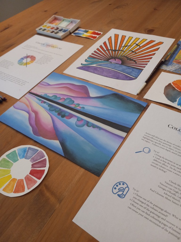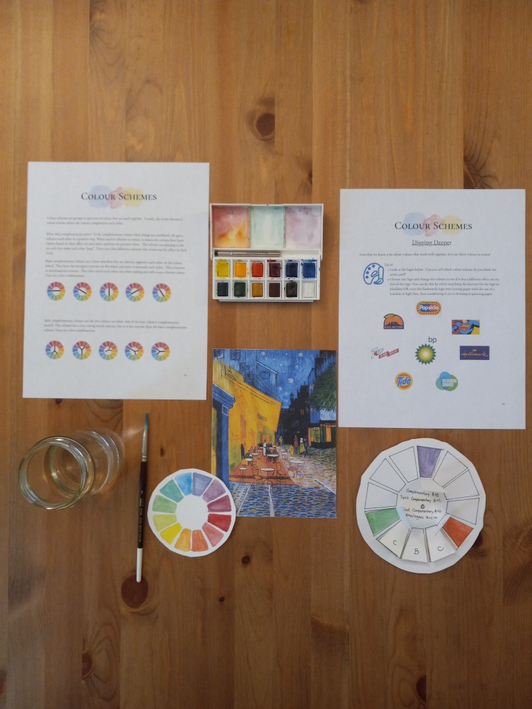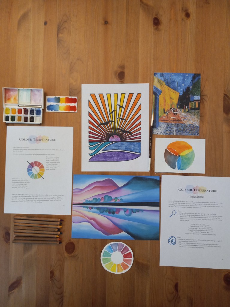 Some of that hands on and digging deeper activities include creating Newton’s Colour Spinner, making a colour scheme window wheel, digging into colour psychology, creating or recreating logos using specific colours, additive and subtractive colour mixing, art study and recreating famous works of art to reflect a different colour scheme or temperature.