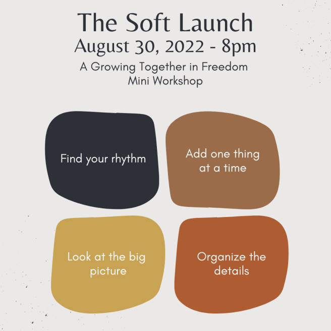 Next week, Tuesday August 30th from 8-9pm EST, I’m hosting a free mini workshop to discuss all things Soft Launch, and I hope you will join me! I will give a rundown of how to build your rhythm, add things in slowly, see the bigger picture and iron out the details.