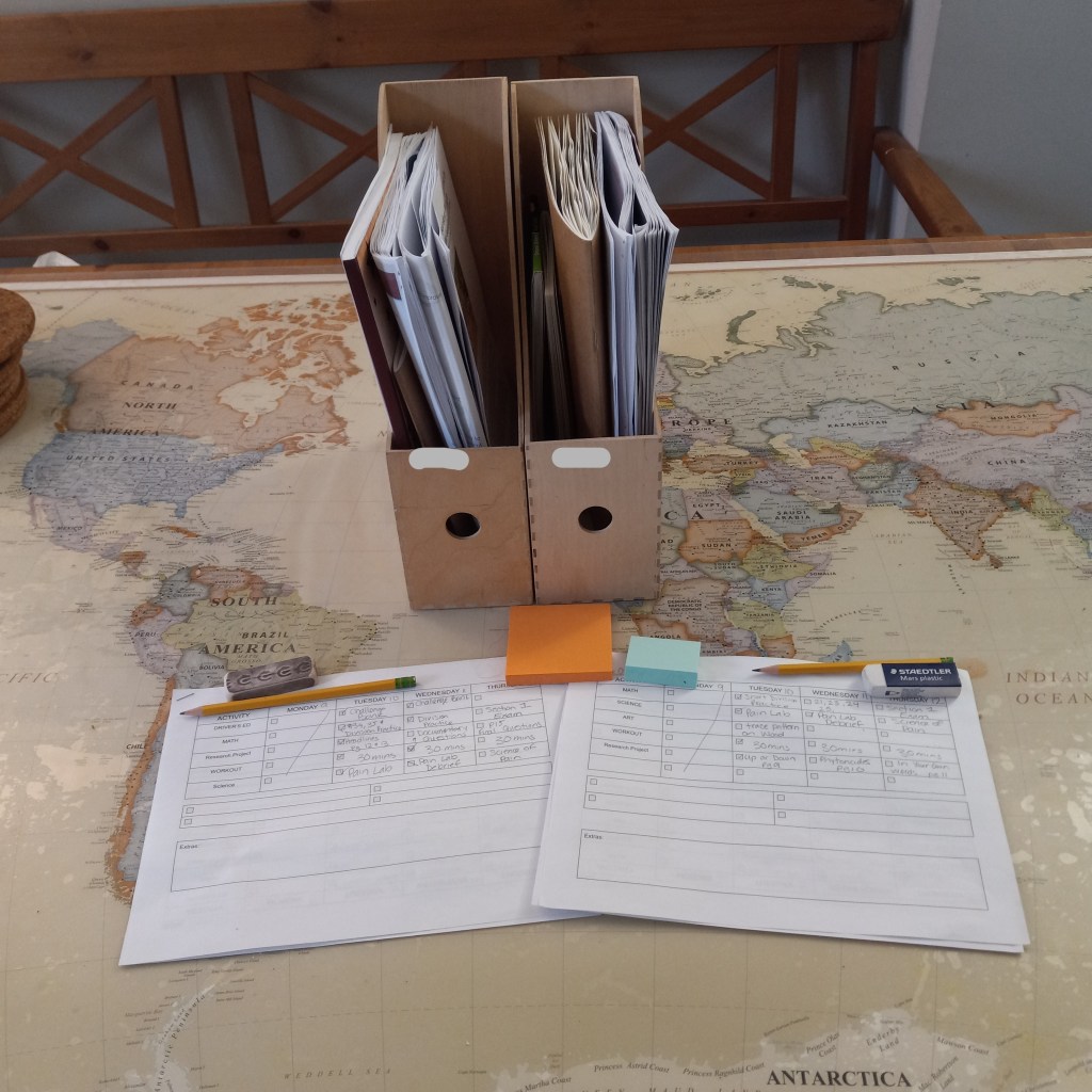 Not included in this is outdoor time for each of my children, which they do but whenever they want and usually involves a walk, a workout or just taking their work outside.