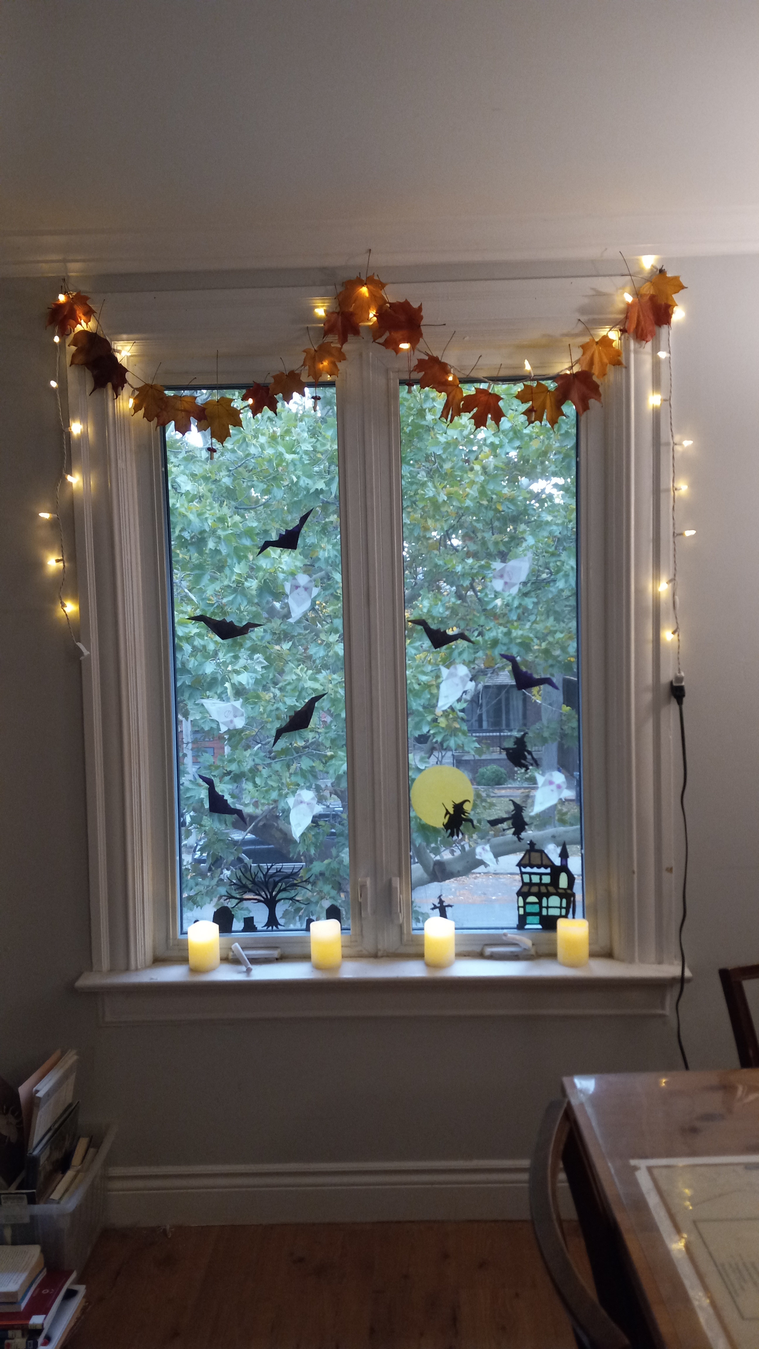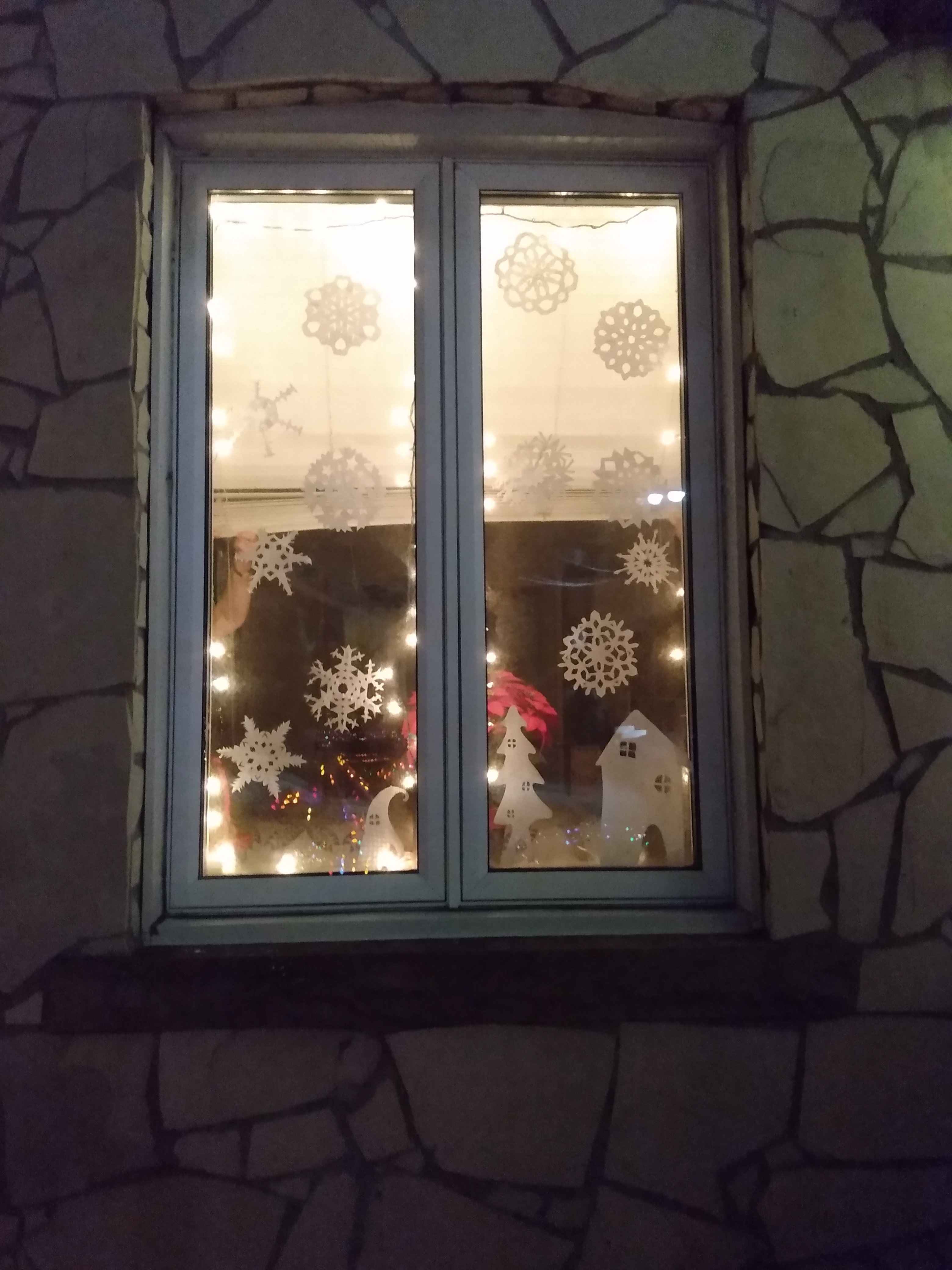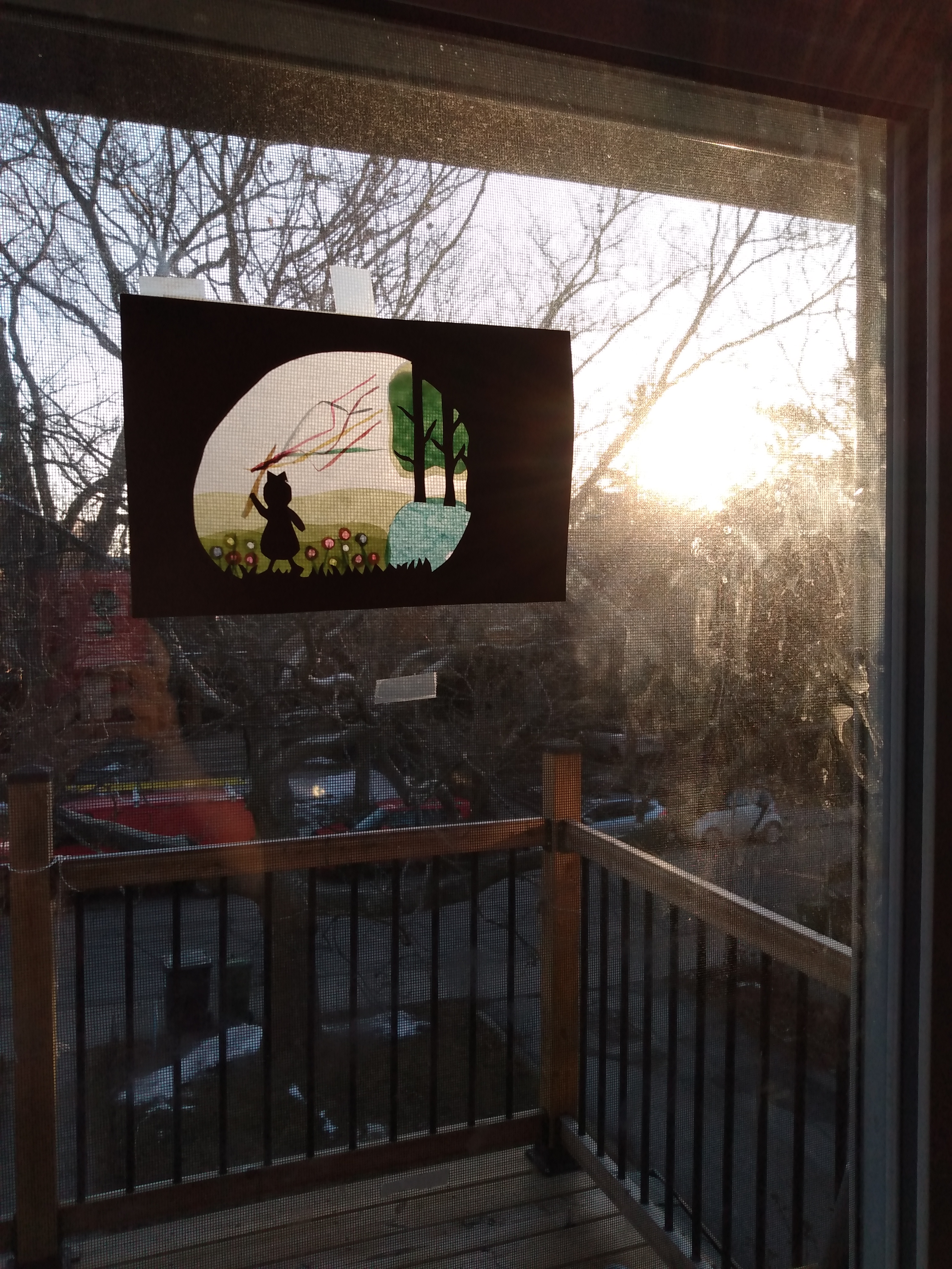 We have one window in our home, right beside our dining room table, that is always adorned with crafts, lights and seasonal treasures. It changes with the seasons by way of dangling decorations from a stick hung off the window frame, kite paper decorations on the windows, and candles and treasures on the window ledge. Here are some of the windows we’ve created over the years.